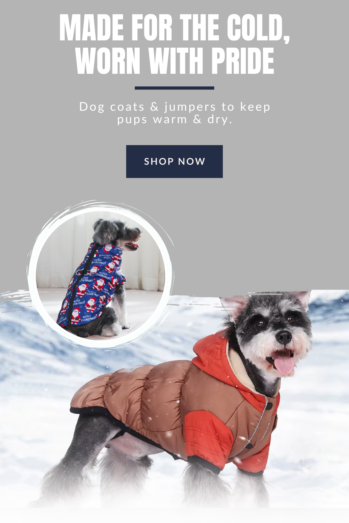 The Christmas Collection features a soft fleece coat and jumper made to keep your pet snug through every winter walk and family photo.